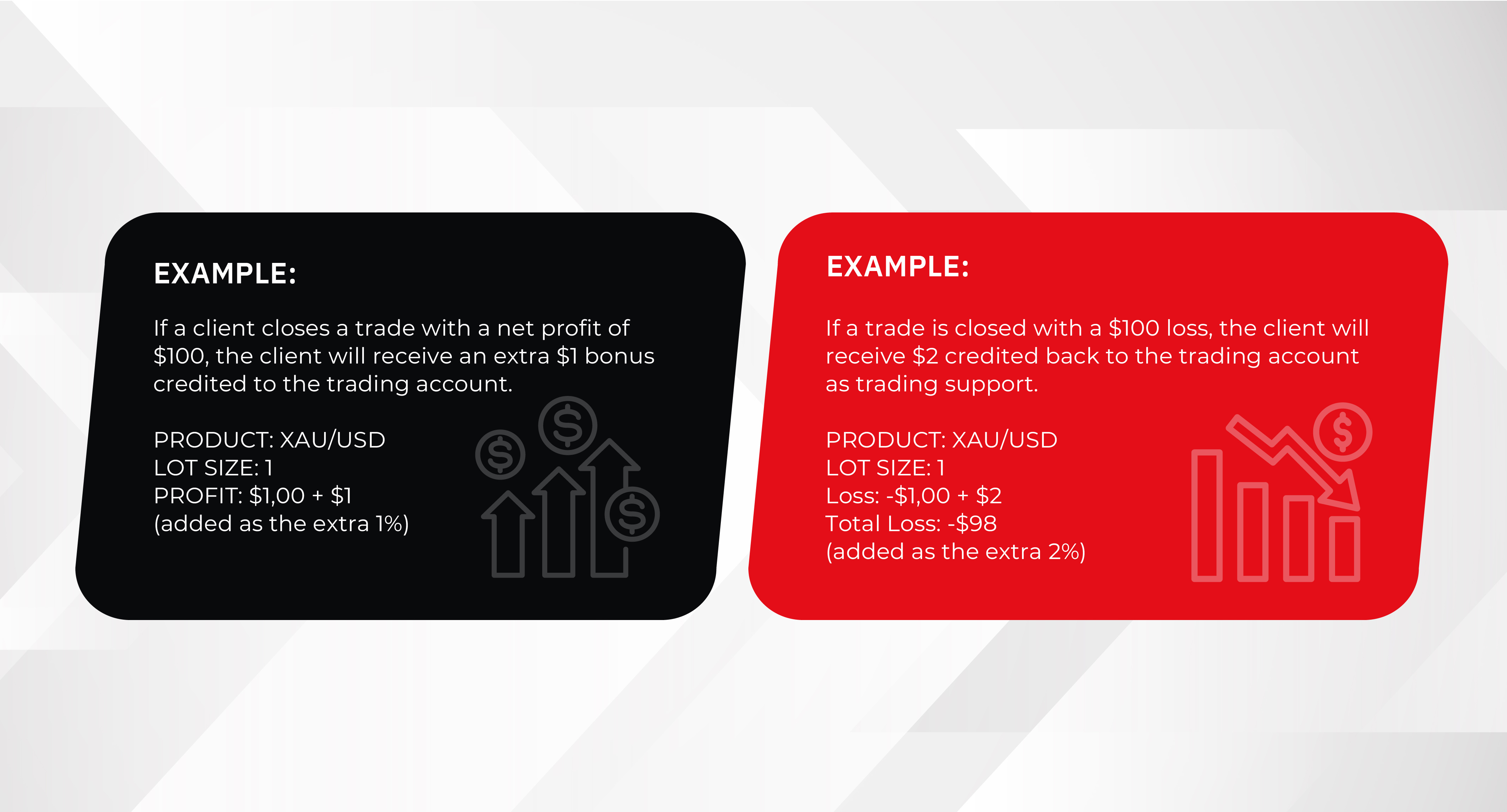 • - an additional 1% trading cashback based on the net profit of each closed profitable trade and