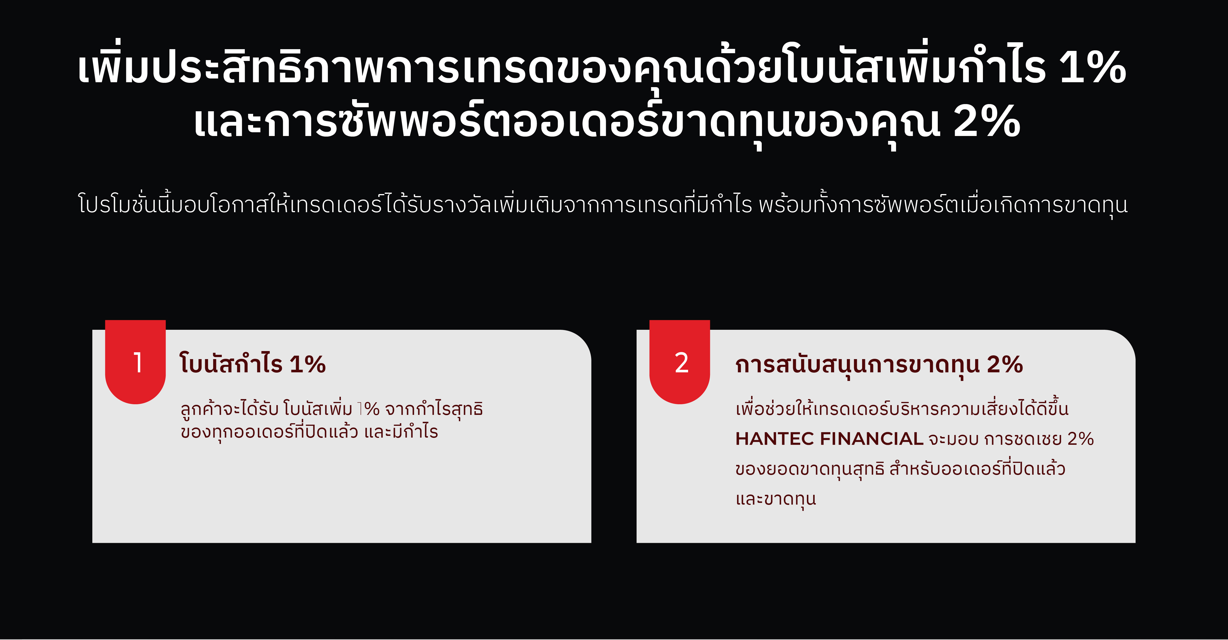 • ○ Trading Cashback 2% จากยอดขาดทุนสุทธิของออเดอร์ที่ปิดด้วยการขาดทุน